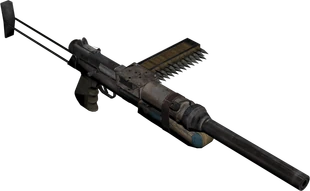 The Bastard was one of the first Metro-made weapons. It is considerably cheaper to make and maintain than other guns, needing relatively few parts to create, making it ideal for weaponsmiths with few resources. This also explains the high production rates at the Armory and why it is so widely used in the Red Line. This gun, like most, has its ups and downs. It has a high rate of fire and holds 30 rounds of ammunition, but fares poorly for sniping due to very poor accuracy beyond a few yards. It has very high recoil, but can be used effectively for stealth when a more effective stealth weapon is unavailable, since a silencer seems to have little to no effect on damage. The biggest downside to using the Bastard is that it jams and overheats roughly every two mags. However, it is praised for its high rate of fire, which is greater than every other weapon except for the Gatling. Overall, the Bastard is an effective weapon at close range and should be used for counter-assaults at mid to close range, or for stealth if no better stealth weapons are available.