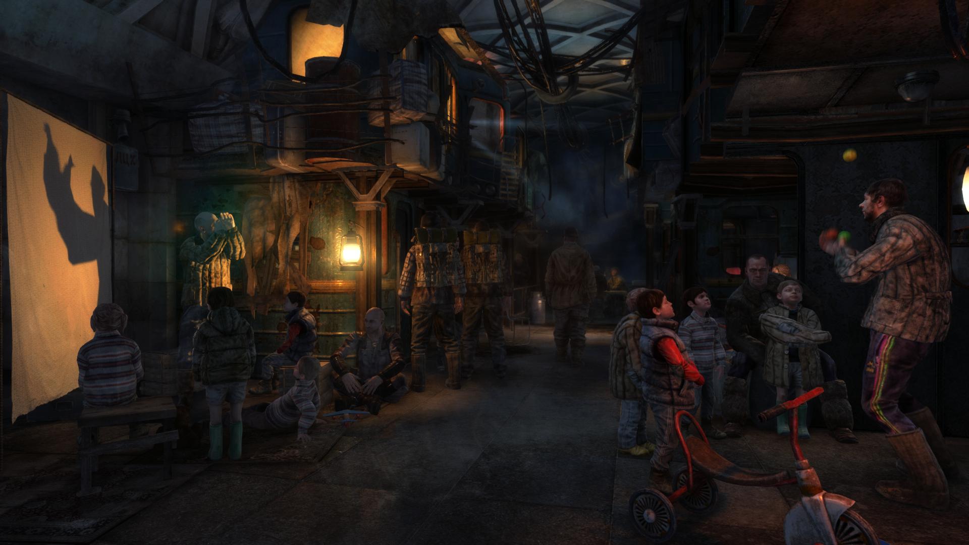 - If one pays attention to the speech given after the "watchman trainer" show, the speaker on stage mentioned a "Hero of the Exhibition" who uses a "mushroom" to destroy the Dark Ones. This is a clear mention to Artyom and what he did in Metro 2033. Ironically, almost everyone in the performance hall didn't realize the "Hero of the Exhibition" is among them.