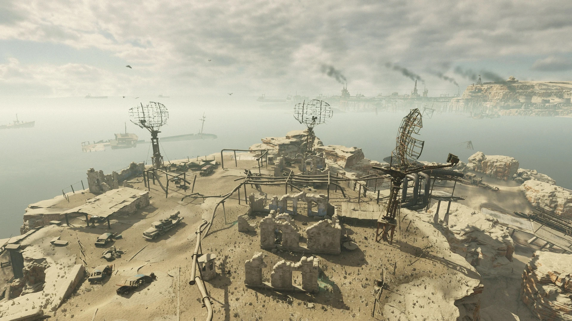 This location is visited by Artyom in the Caspian level during one of the story missions. Formerly an underground base with a small dock and compound on the surface, Caspian-1 was devastated by the desertification of the Caspian Sea. After Artyom meets with Giul, a local resistance fighter who is trying to free her enslaved nation from the Munai-bailer, he, Giul, and Damir (who joins the two later) travel to the underground facility which used to be the control centre of the satellites. The facility remained operational several years after the war (at least until 2019, as there are still satellite images from that year stored in its archive) but was later rendered uninhabitable, thanks to the area being geologically unstable. Many rooms collapsed and are now filled with sand or debris. Toxic gases also filled the lower section of the bunker after the ventilation system malfunctioned and the power grid was severely damaged, with only few crucial system remaining operational, although they can no longer be powered all at once. There are no human survivors in the bunker by the time Artyom visits it. Instead, the entire underground complex is populated by spiderbugs.