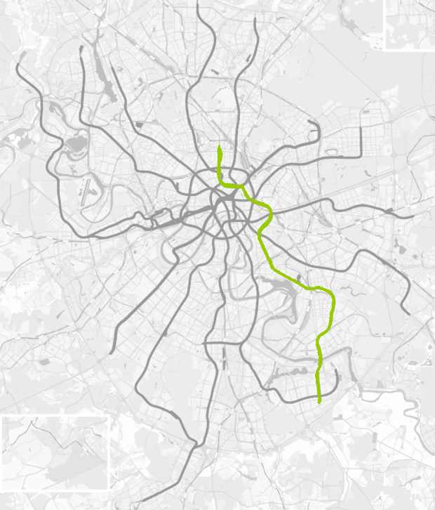 The Lyublinsko-Dmitrovskaya line is 38.3 km long and has 17 stations, running north to south. Several southerns stations became flooded after the War as the result of the Moskva river leaking into them.