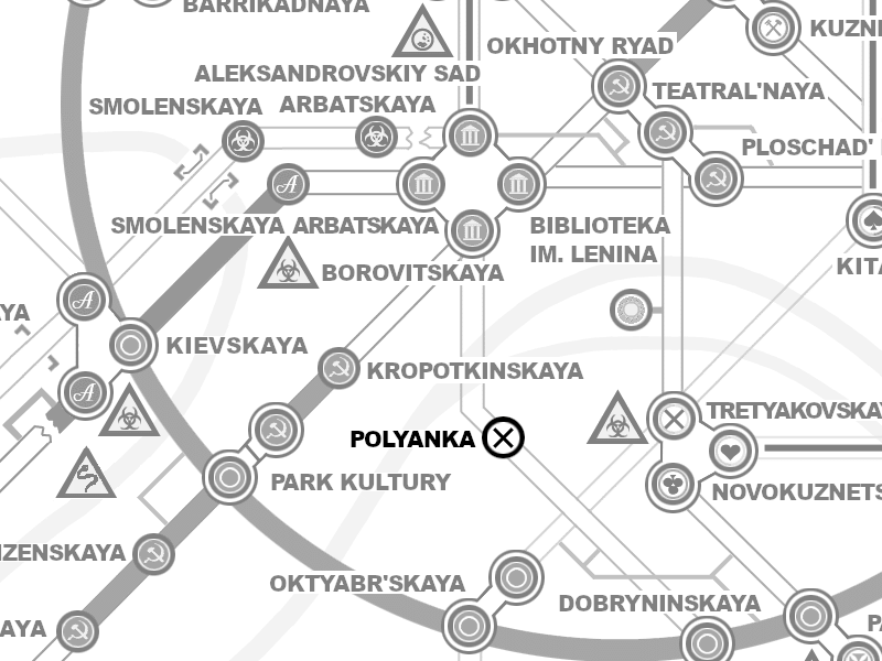 Polyanka (Russian: Полянка) is an abandoned station of the Moscow Metro south of Polis. Known as "Destiny Station" by the Council of Polis, Polyanka is visited by Artyom, Hunter's group, as well as Khan and Ulman.