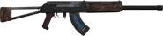 The Saiga-12, known in-game simply as the Saiga, is a magazine-fed pre-war automatic shotgun available only in Metro: Last Light and partially in Metro 2033 Redux. In Metro 2033 Redux, the player can only obtain the weapon through using a map glitch in the Depository (drum magazine attachment, silencer, laser sight), or through using cheats to kill an NPC in Armory (Grenade launcher attachment, which is functional). Unlike some Last Light weapons featured in Metro 2033 Redux, it acts as a stand-in for the Abzats from Metro 2033, a powerful automatic shotgun, though the Abzat was later added to the game by purchasing the Season Pass, It's also one of the last weapons Artyom comes across in the game, first purchasable in Undercity and found on numerous enemies afterwards.